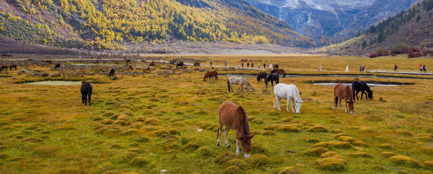 位於康定城17公里外的雅拉鄉,是知名歌曲《康定情歌》的起源地,為西北最大的高山湖泊之一,又稱「野人海」,海拔高3700公尺,四周有群山森林、幾十個小海子圍繞,就像眾星捧月一般。一入秋色,這裡像是上帝打翻了調色板,紅、橙、黃、綠層層上色,鋪灑在森林、峽谷、海子、清泉上,堪稱是《木格措》一年中最美的季節。