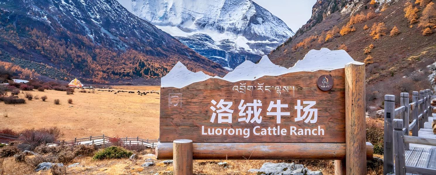 洛絨牛場是亞丁自然保護區著名景點之一,海拔4150米,是附近藏民放牧的牧場;洛絨牛場背靠三座神山,牛場周圍是連綿的高山草甸,春夏時節草甸上野花盛開,漫山遍野,非常壯觀,貢嘎河從牛場穿過,成群的牛羊在河邊和山坡上悠閒的吃草,一派和諧景象,徒步轉山的背包客常在此安營紮寨,觀賞拍攝神山日出日落。