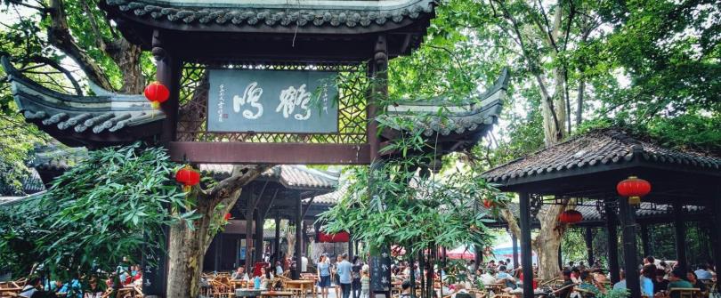 鶴鳴茶館是成都最具代表性的百年老茶館之一,創建於1920年代,充滿川西風格建築與老成都氛圍;茶社採「一茶一座」方式,午後時光,坐在竹椅木桌間悠閒品茗,喝杯蓋碗茶、配個茶點、聊天、賞景,感受成都人慢生活的節奏。