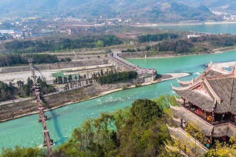 中國古代最偉大的水利工程,每年都有不少水利專家來此觀摩,又稱水利的燦爛明珠;由蜀郡太守李冰於西元前251年主持修建,是中國現存最完整的水利工程,由魚嘴分水堤、飛沙堰、寶瓶口三部份組成,在此可感受古人高度的智慧。