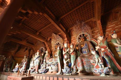 「雙林寺」寺中的唐槐、宋碑、明鍾、壁畫、彩塑等都是稀世珍寶,但最珍貴的當屬2056尊彩繪泥塑。天王殿內的天冠彌勒菩薩、釋迦殿內的釋迦牟尼故事群像、羅漢殿內的十八羅漢雕塑等,繼承了唐、宋、元、明等各個時代的彩塑手法,個個形神皆備。雙林寺的彩塑,尊尊精美,件件精緻。有「古代雕塑博物館」、「東方彩塑博物館」、「瑰寶雙林」等美譽。