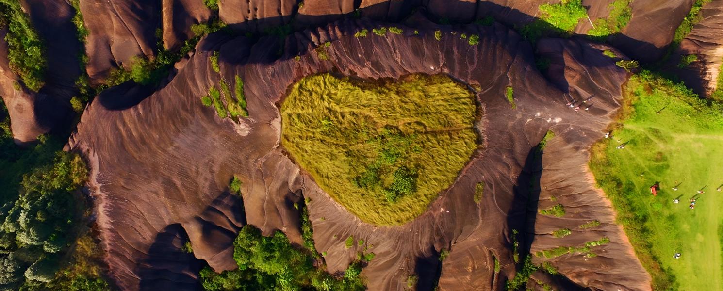 欣賞飛天山,無需太豐富的想像力,她們身著紅色的外衣,在綠色的大地演繹一場時間的讚歌,每一個形象都栩栩如生。步入飛天山,鋪面而來的是滿眼紅色,似人、似獸、似禽、似物的奇峰俊坦連綿起伏,形態萬千,絢爛而壯觀,讓每一次遇見,都讓人有初見般的心跳。