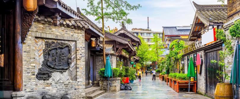 這裡是清朝康熙年間八旗軍隊和家屬留駐成都時建起的胡同,如今胡同已不在,僅遺留下來三條古巷子,分別為寬巷子、窄巷子和井巷子。如今結合了坐落其間的四五座四合院群落而成為成都市三大歷史文化保護區之一。巷子中有石墻堆砌的高樓、墻面,也有各式小細節如寶瓶、寶劍,各式雕花,充滿南方細膩風格。現如今,寬窄巷子內多是充滿創意、國際風格的美食文化。