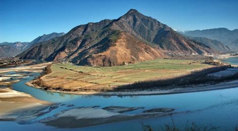 從「世界屋脊」的青藏高原奔騰南下的金沙江、瀾滄江、怒江三大河流,在雲嶺、怒山、高黎貢山三大山脈的挾持之下,在滇西北境內形成了「三江併流」的舉世奇觀。「江流到此成逆轉、奔入中原壯大觀」,人們稱此奇觀為長江第一灣。