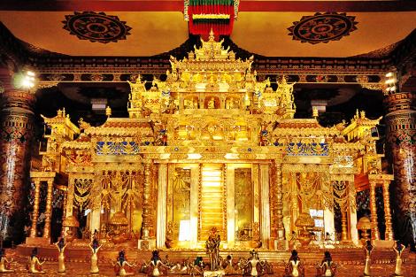 香巴拉時輪壇城坐落於香格里拉壇城廣場正中,外觀雄偉、氣勢磅礡;按照天圓地方的理念,有著藏傳佛教的內涵和民族文化的滲透,裝飾畫採用純天然的礦物顏料和自然塗料,是一座內外協調、規模宏大的藏式建築群。