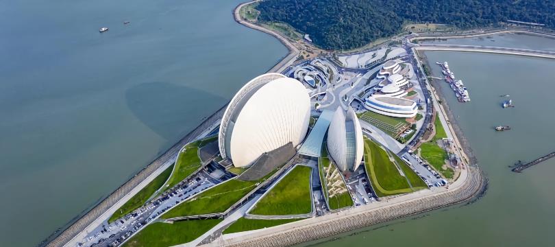 以生長在珠江口的日月貝為主題、以名畫《維納斯的誕生》為設計靈感;愛與美的女神維納斯誕生於貝殼,珠海歌劇院則塑造了一雙巨型貝殼從海面升起的意象,不但是一個偉大的藝術品,而且以建築的形象表達一個濱海城市的最大特征。