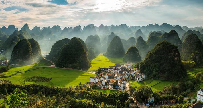 貴州省位於中國西南部,海拔在一千公尺以上,自然風光奇特秀麗,典型的喀斯特岩溶地貌,其山石、水景、洞穴等風光千姿百態;有苗、布依、侗等17個世居少數民族,民族風情濃鬱古樸;省會城市貴陽氣候四季如春,溫暖濕潤。