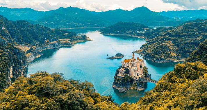 因位於萬峰叢巒之中而得名,湖面面積176平方公里,湖內有30餘個島嶼、58個半島,湖水環繞,峰巒參差,湖光山色,盡收眼底。萬峰湖是雲貴高原的一顆平湖明珠,享有「萬峰之湖,西南之最,南國風光,山水畫卷」之美譽。