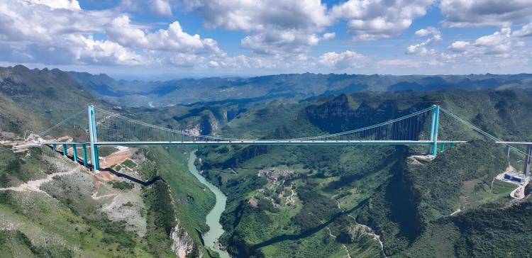 貴州省的鋼桁梁懸索橋,橫跨北盤江,穿越花江峽谷,全長2890公尺,主跨1420公尺,以其625公尺的橋面高度成為世界第一高橋。花江峽谷大橋擁有兩個主要的世界紀錄級別的特徵,因此被譽為「橫豎都是世界第一」。