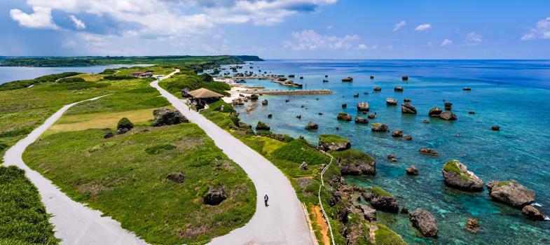 宮古島,沖繩最純淨的離島天堂,以湛藍海水與白砂聞名。伊良部大橋連結夢幻景色,來此可盡情潛水、浮潛或賞夕陽。島上步調悠閒,是遠離塵囂、享受慢旅行的絕佳去處。