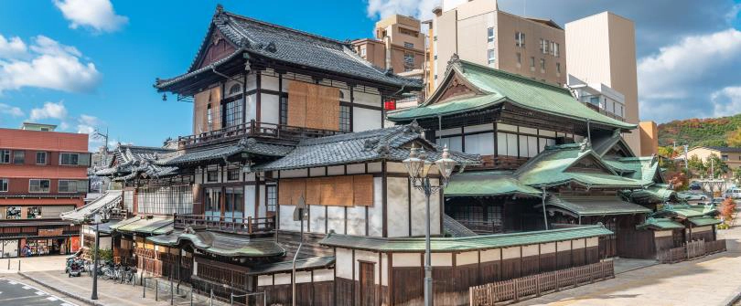 相傳至今已3000年歷史之道後溫泉,號稱天下第一古湯。上至日本天皇下到平民老百姓都曾享受過這裡的溫泉。有個「白鷺傳說」。每天早上6點擊響吊在屋頂振鷺閣的大鼓,宣告開館的鼓聲響徹四方。