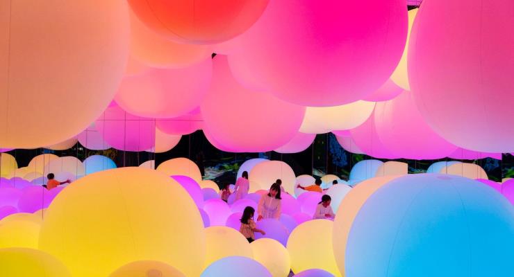 互動性十足、色彩繽紛絢麗的「teamLab學習!未來的遊樂園沖繩」位於「DFS 旗下沖繩T廣場」3樓,距離沖繩都市單軌列車Omoromachi」站只有2分鐘步程,展區內有11項互動式裝置藝術作品,大人小孩都能體會樂趣的展覽
