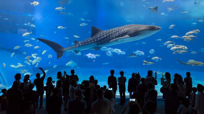 海洋博公園擁有沖繩最受歡迎的美麗海水族館。水族館中充滿神秘的沖繩海洋生物,悠游在您眼前,而稱為黑潮之海的巨大水槽內,有著世界上最大的魚類-鯨鯊以及於世上首次人工繁殖成功的鬼蝠魟,充滿魄力的展示空間讓人目不暇給。