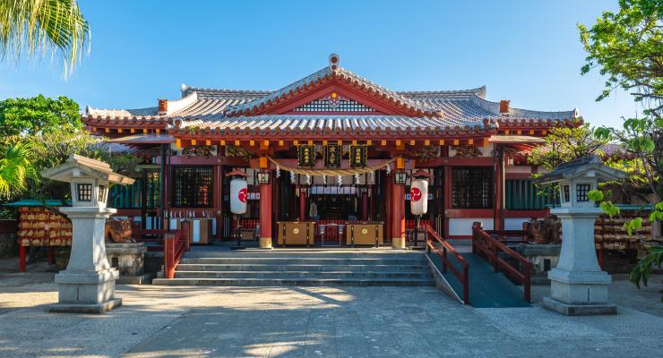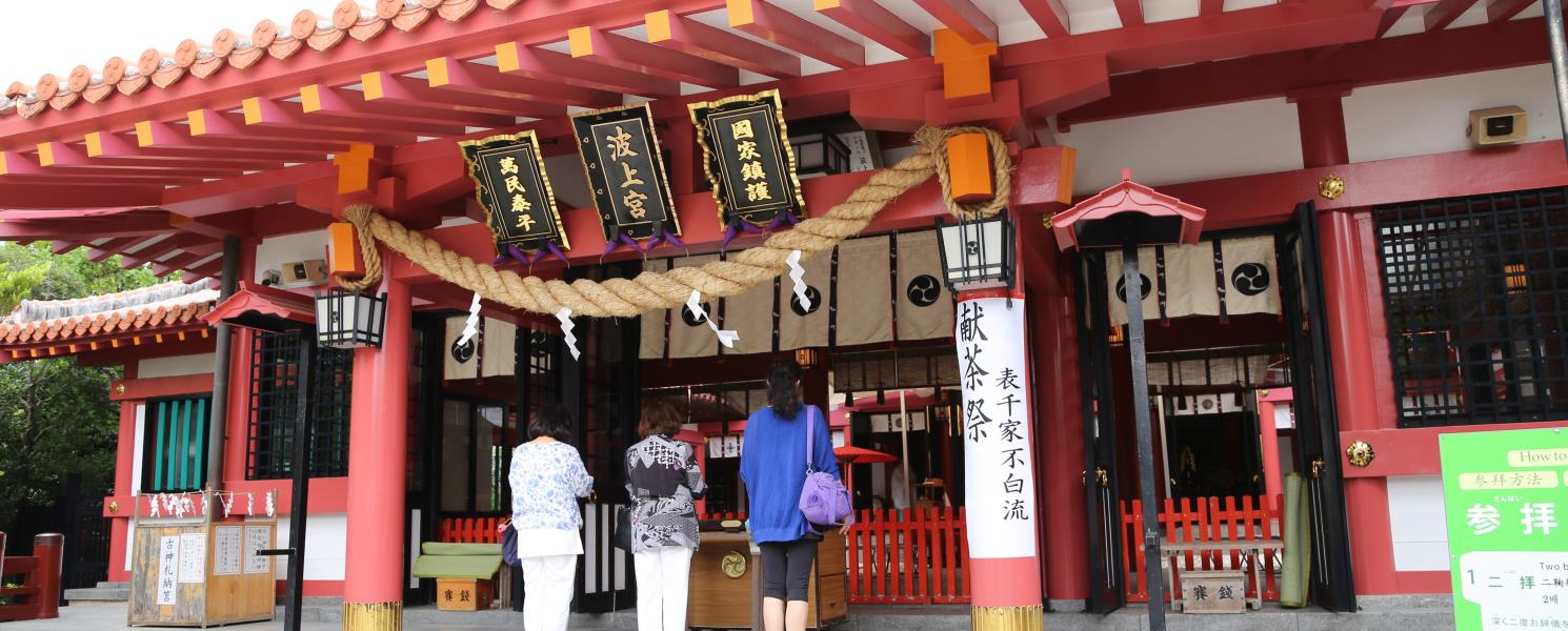 波之上神宮為琉球八社之一,也是八社中唯一被列為官幣小社的神社,神社座落在那霸海岸、矗立於崖上,其所處的崖下就是波之上海灘,紅瓦神社傍著沙灘浪濤,這樣的景觀顯得格外特別,不時會有新人會此舉辦琉球傳統神前結婚式。