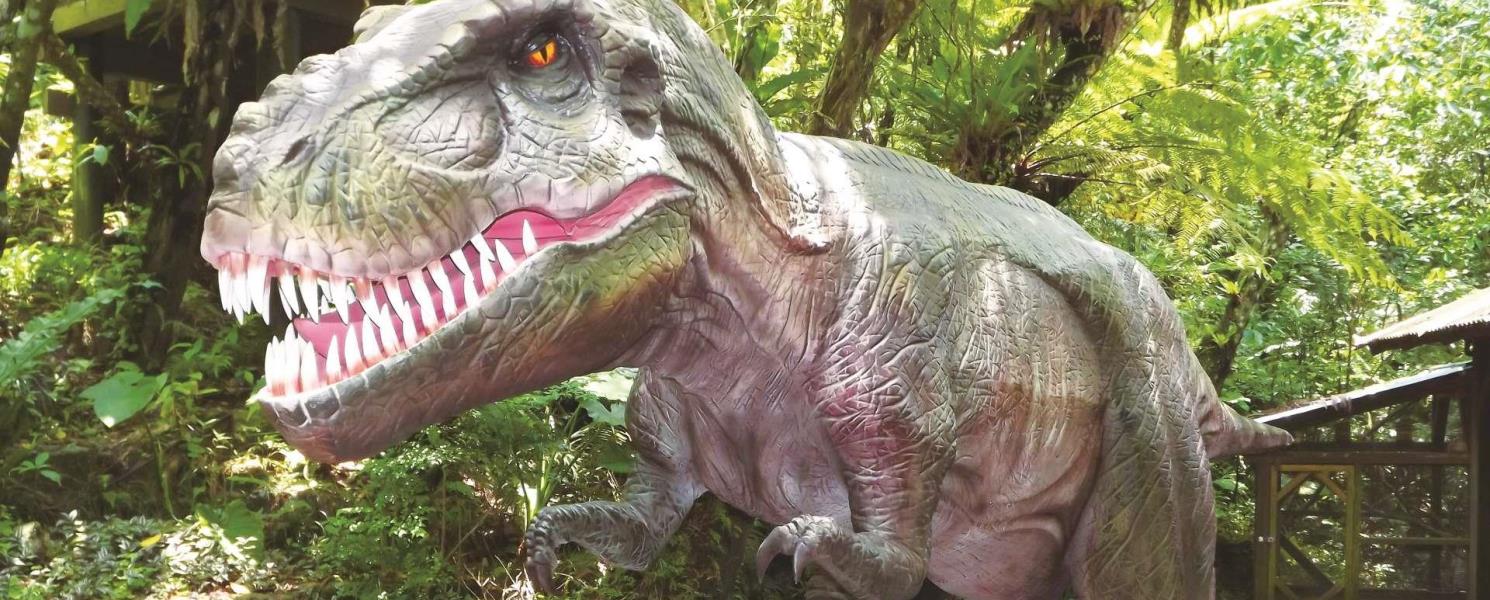 園區以熱帶森林步道結合巨型恐龍模型打造侏羅紀氛圍,彷彿穿越到恐龍時代。 小朋友可以近距離觀賞栩栩如生的霸王龍、三角龍、劍龍,還能邊玩邊學恐龍小知識。