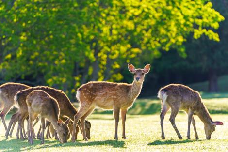 奈良梅花鹿公園除了大片綠地,最有名的象徵是成群的鹿。傳說中,春日大社的神祇,就是乘著鹿降臨於此地的。奈良公園內的小鹿十分可愛。會找遊人覓食。
