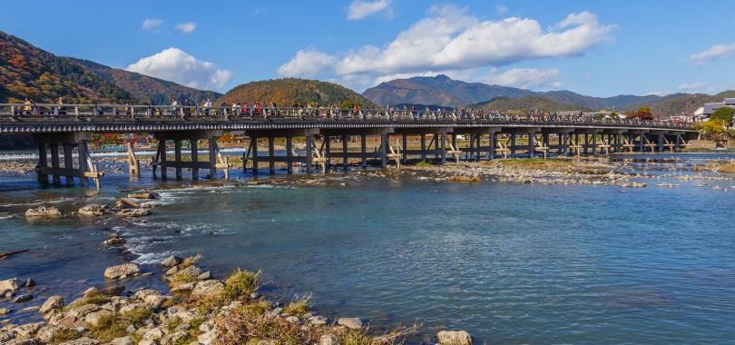 《嵯峨嵐山》是京都的代表性景點,不論是幽靜的竹林小徑、或是經典的渡月橋,四季變化多端、美景如畫,春櫻、夏綠、秋楓、冬雪,不論何時到訪都讓人深刻難忘。