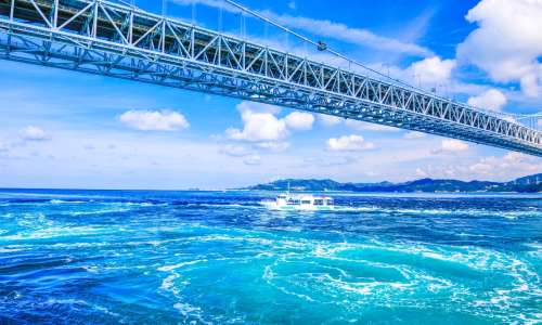 在位於步道前端的展望室中,可從海上45公尺的地面設置的玻璃地板親身感受漩渦與轟隆作響的激烈潮流!可欣賞太平洋與瀨戶內海的宏偉景觀,並從正上方遠眺橋下通過的船隻。鋼架工整搭建的橫樑與大自然的景觀,保證可以拍出精采美照!!