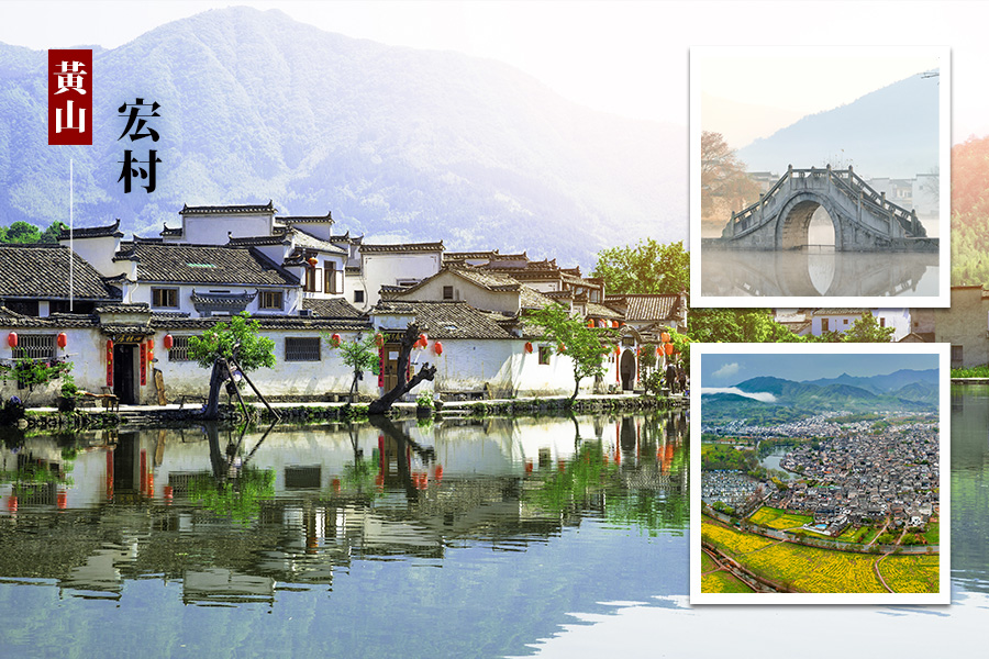 【臥虎藏龍拍攝地—宏村(入內參觀)】有"中國畫裡鄉村"之稱,電影臥虎藏龍拍攝地的宏村,是極具古徽州人建築智慧的牛形水系古村落,宏村建村初期,因發生過火災,所以請風水師來改善,利用完善的水利設施,作成了今天防火、又有生財意義,以及極有創意牛型的村落。電影「臥虎藏龍」開始,周潤發牽馬進標局的鏡頭,就是在南湖這裡取的景。